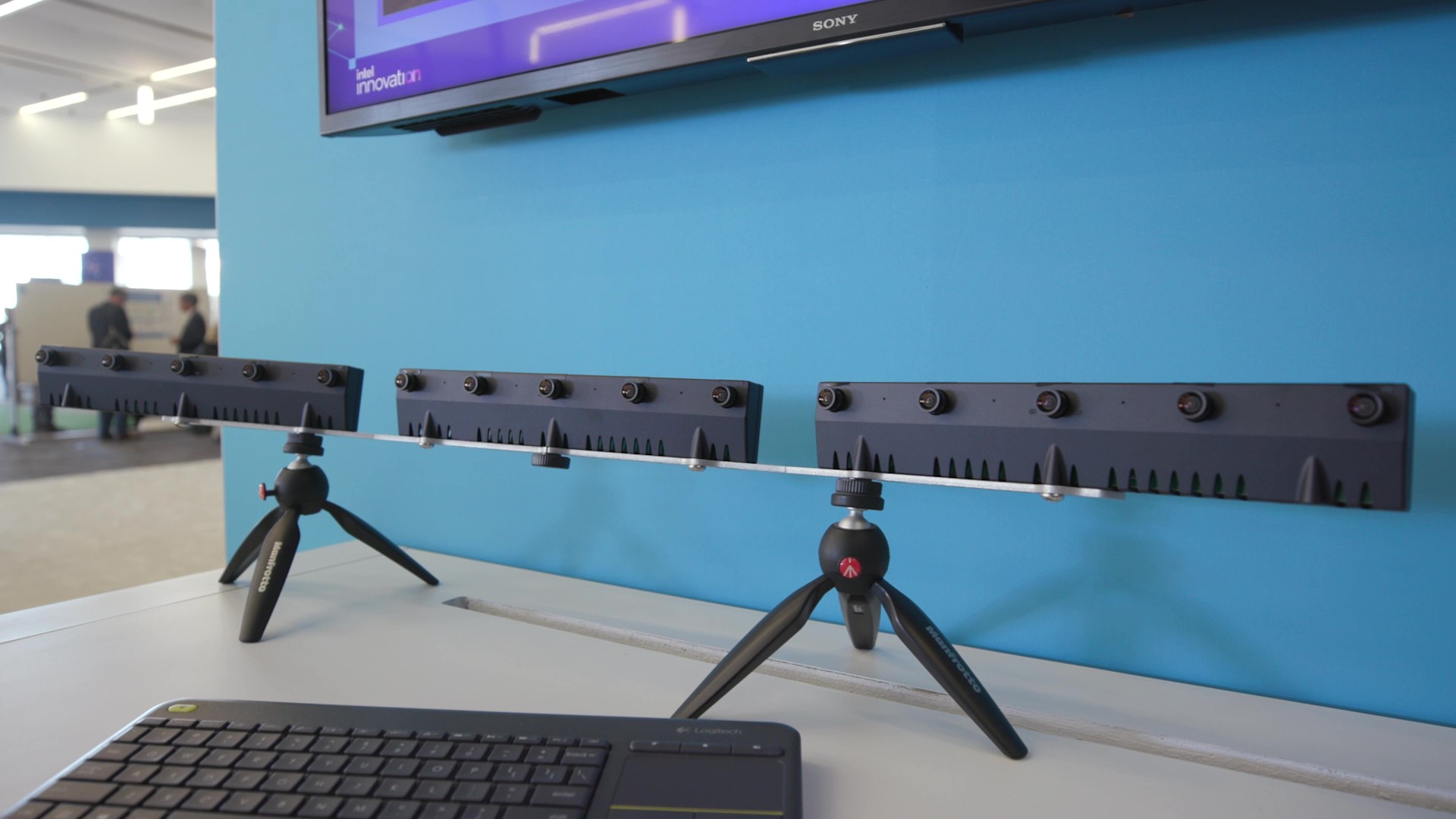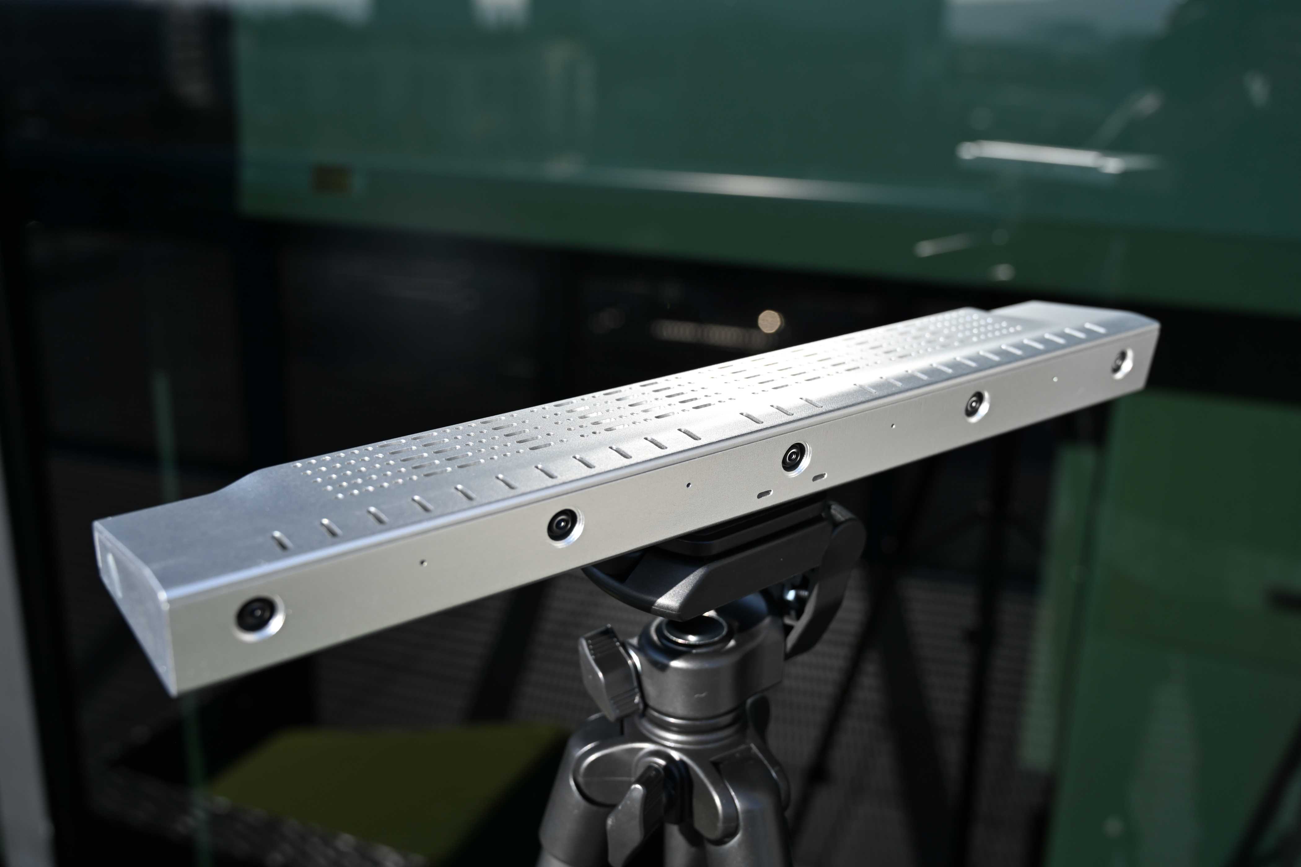 This is a multi-camera bar. The 5 cameras on a bar can grab a light field image that will be sticthed into a continuous frame allowing for rotation around a central pivot point.